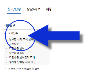 홈택스 로그인 - 신고/납부 - 국세납부 - 납부할 세액 조회&납부